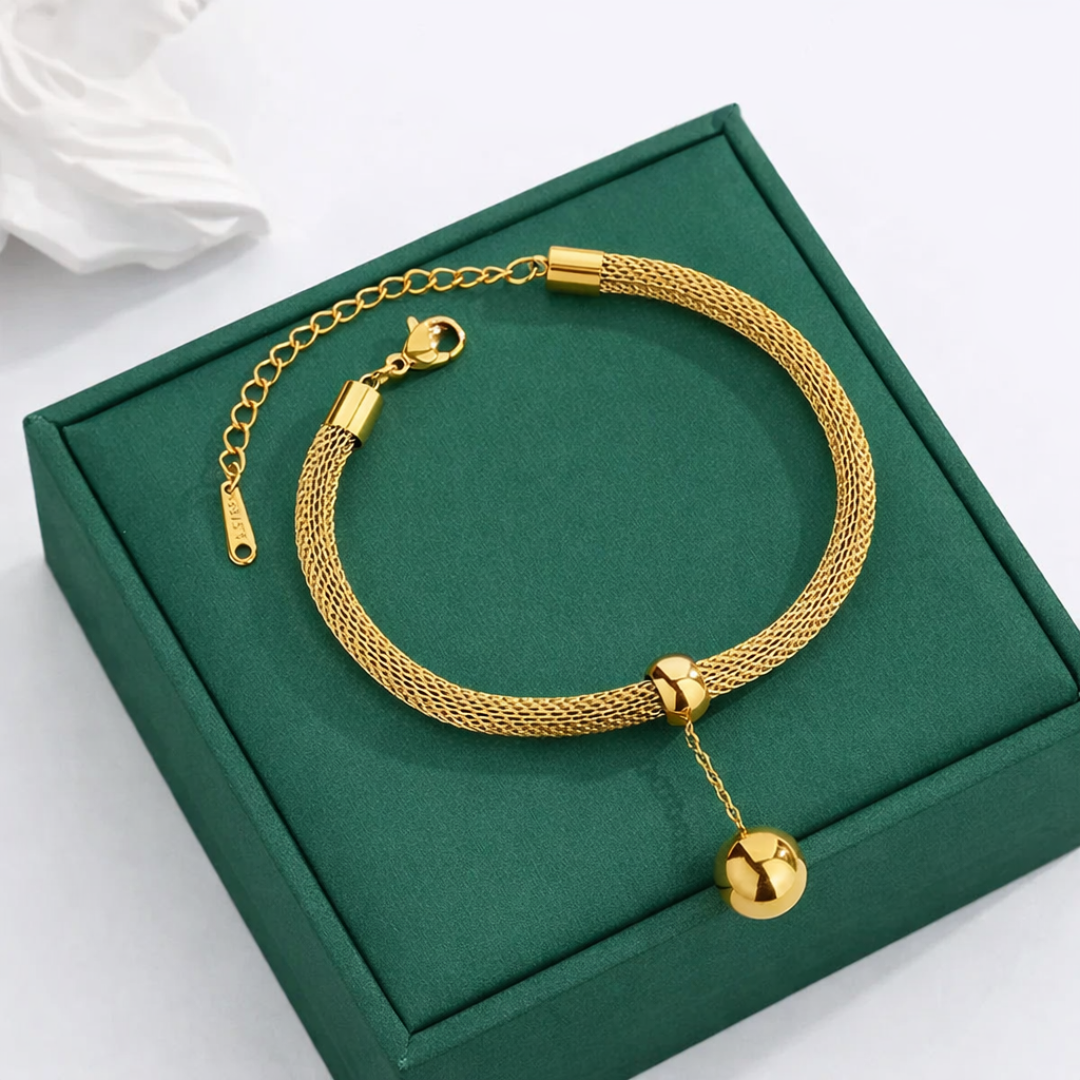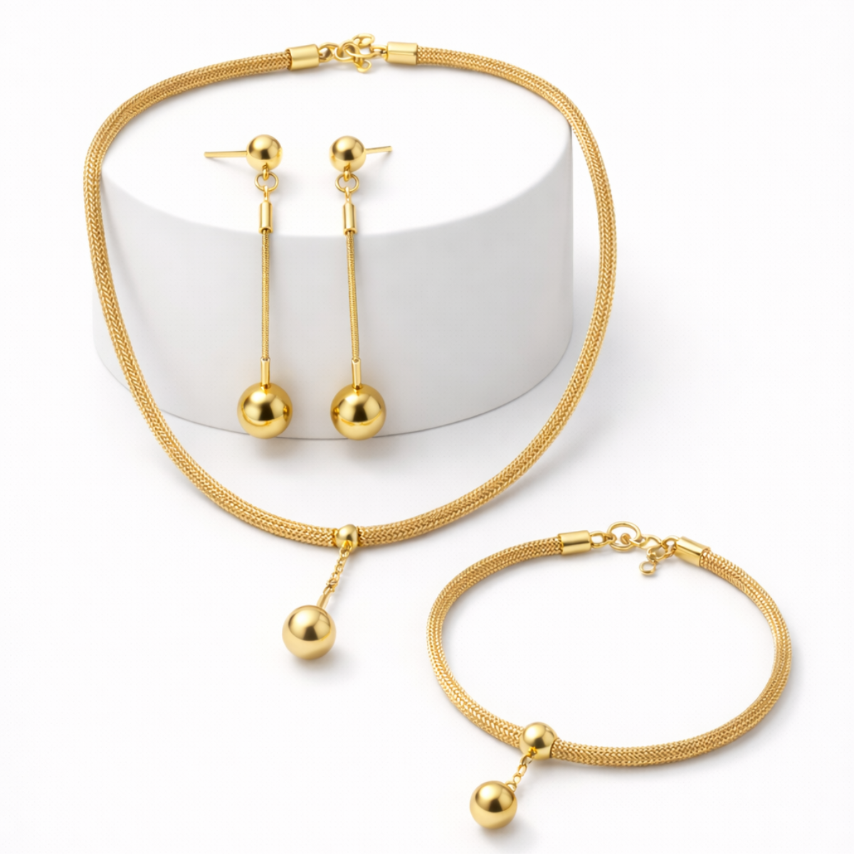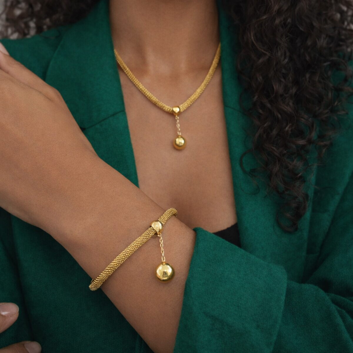 Ensemble de collier, bracelet (Poignet fin) et boucle d’oreille en forme de maille ronde